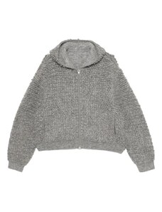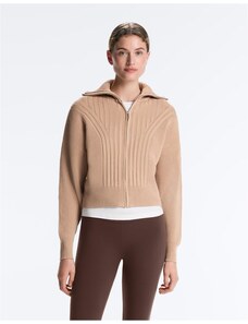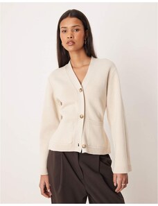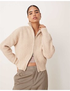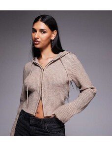 The Frolic exclusive ribbed knit double zip through hooded cardigan in oat-Neutral