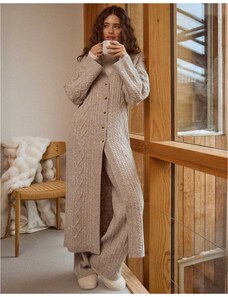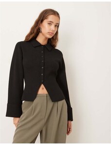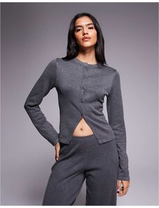Kaiia exclusive button through split front long sleeve cardigan co-ord dark grey