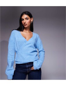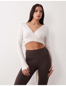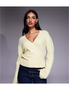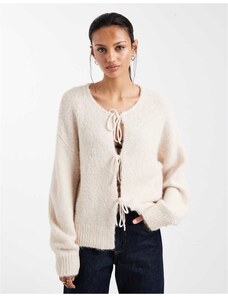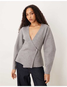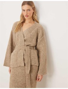 YAS premium textured wrap front knitted cardigan co-ord in taupe melange-Grey