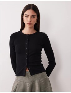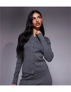 Kaiia exclusive fine knit button through cardigan co-ord in charcoal-Grey