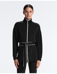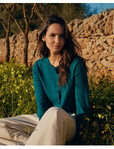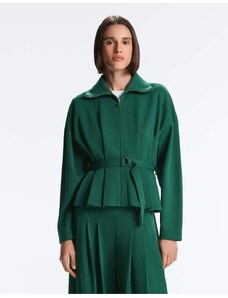 OYSHO Piqué jacket with belt and pleat detail with cotton in dark emerald-Green