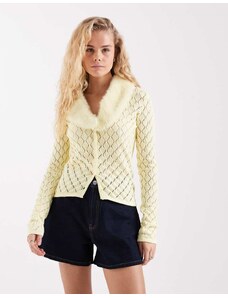 House of Sunny Peggy cardigan with detachable faux fur collar in butter yellow