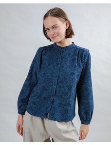 Ribbon Boho Blouse Navy - Organic Poplin Cotton - Brava Fabrics