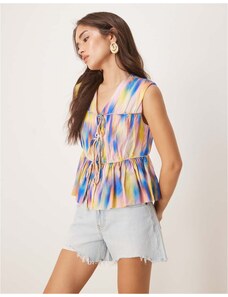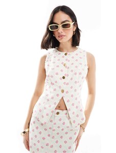 The Frolic exclusive button through split front denim waistcoat co-ord in cream and pink floral-Multi