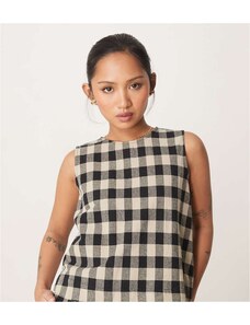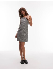 ARKET cotton rich square neck mini dress in black and white mono gingham check-Multi