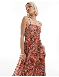 Murci premium mesh cowl detail drape thigh split maxi dress in leopard and orchid floral-Multi