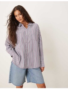 AWARE oversized boyfriend fit oxford shirt in blue and burgundy stripe