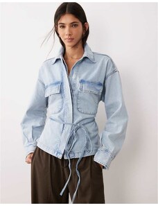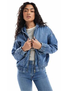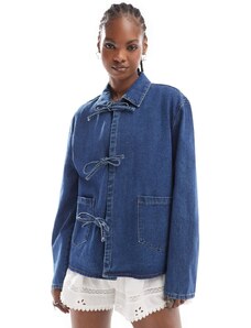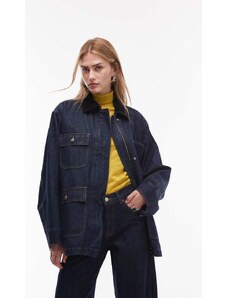 Gina Tricot cape short denim trench jacket in indigo rinse dark wash-Blue