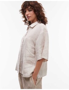 Wanderdoll Alix cinched waist seam detail denim jacket co-ord in mocha-Brown