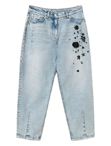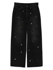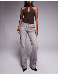 I.AM.GIA Greer low rise cross front stud detail waistband slim kick flare jeans in grey