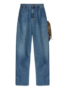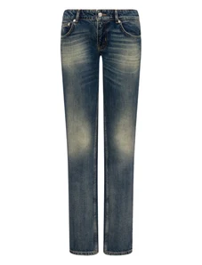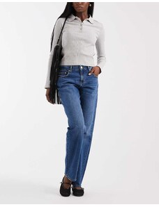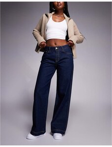 Princess Polly Jankins mid rise cinch buckle detail straight leg jeans in dark blue wash