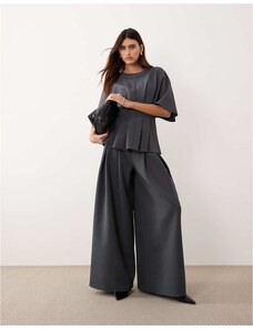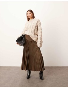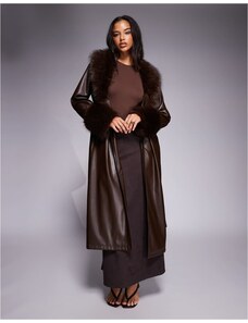 ASOS LUXE co-ord PU tailored skirt with split back in tan-Brown