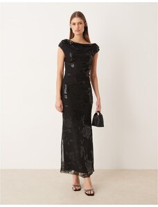 Gina Tricot fallen off one shoulder asymmetric sequin maxi dress in black