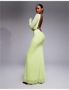 AFRM Talmo long sleeve boatneck maxi dress with open back detail in citrus pin dot-Green