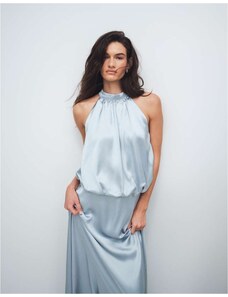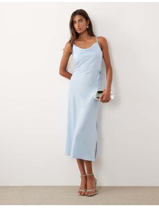 Kaiia exclusive cotton rich linen look back split maxi skirt co-ord in dusty blue