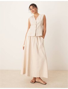 4th & Reckless linen blend bandeau foldover gold button detail maxi dress in beige-Neutral