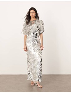 ARRANGE lace insert drop waist blouson sleeve trapeze maxi dress in light blue