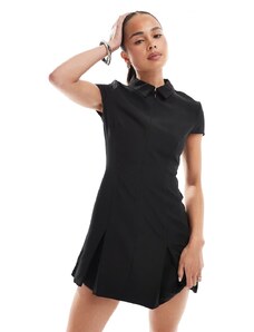 Gina Tricot textured mini dress with open tie back and volume sleeves in black