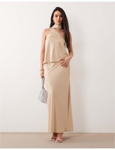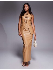 ASOS LUXE co-ord PU tailored skirt with split back in tan-Brown