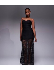 Kaiia exclusive structured bandeau contrast skirt sheer hem maxi dress in black lace