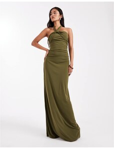 YAS halter neck satin maxi dress with corsage detail in provence blue