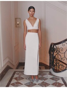 Wanderdoll Vivienne bridal heavy structured satin fishtail maxi skirt co-ord in white