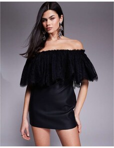 The Dolls House Circa Kelsey leather-look lace overlay bardot mini dress in black