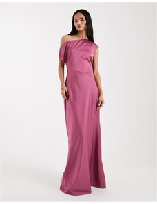 Six Stories Bridesmaids satin asymmetric off shoulder maxi dress in dark pink-Purple