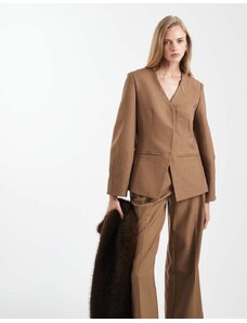 4th & Reckless tailored collarless cinched waist cocoon sleeve blazer co-ord in camel-Neutral