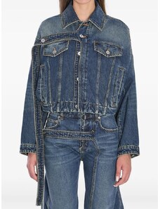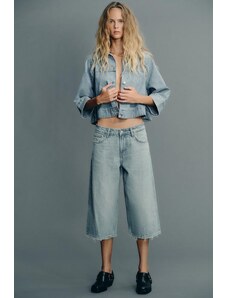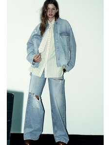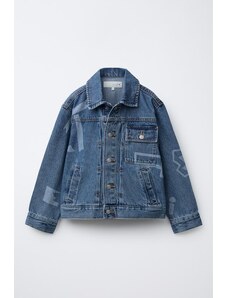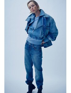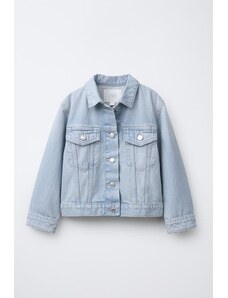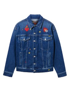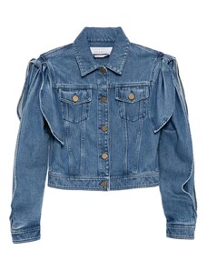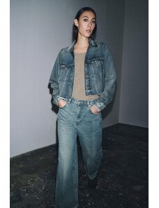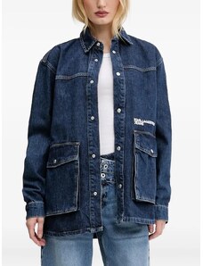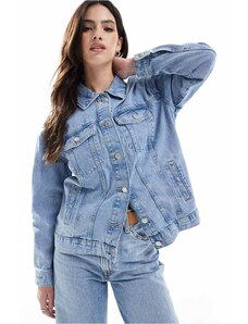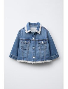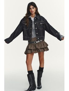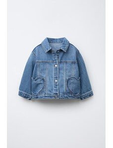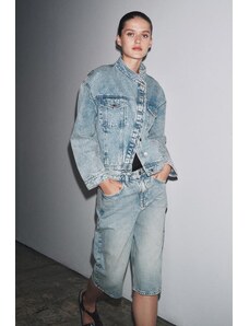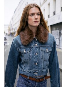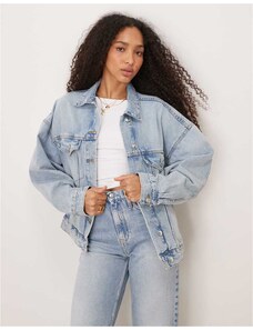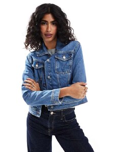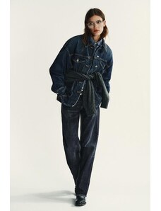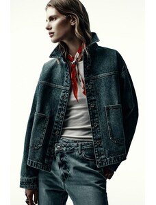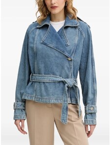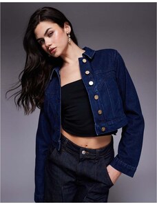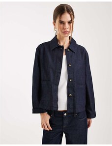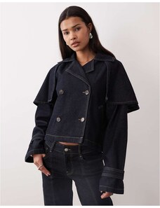 Gina Tricot cape short denim trench jacket in indigo rinse dark wash-Blue