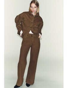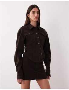 Wanderdoll Alix cinched waist seam detail denim jacket co-ord in mocha-Brown