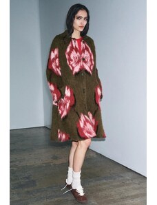 ZARA BRUSHED EFFECT JACQUARD KNIT COAT Brown S