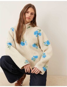 JJXX half zip teddy jacket with floral print in beige-Neutral
