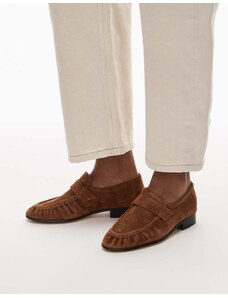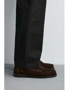 ZARA TOPSTITCHED SPLIT SUEDE LOAFERS Chocolate Brown 2