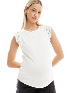 Vero Moda Maternity t-shirt with broderie sleeve detail in white