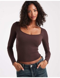 Gina Tricot Soft Touch long sleeve top with scoop neck and split cuffs in mushroom brown