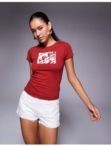 Kaiia cotton rich angel logo bow detail baby tee co-ord in pink and burgundy