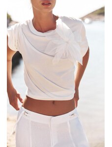 The Frolic exclusive baby tee with printed floral shell graphic logo in cream-White