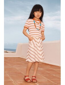Kaiia embroidered bow logo crew neck short sleeve crop top co-ord in coral and baby pink-Multi