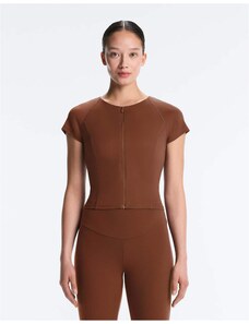 AWARE textured jersey long sleeve t-shirt with lettuce edging in chocolate brown