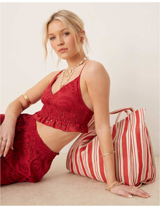 Iisla & Bird broderie v neck ruch beach top co-ord in cherry red