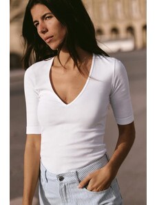 Skechers Women's Pima V-Neck T-Shirt in White, Size XS | Pima Cotton/Spandex