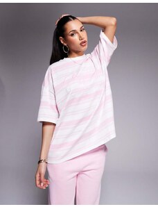 ARRANGE Curve oversized premium heavy weight t-shirt in pink and burgundy stripe-Multi