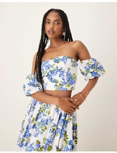 YAS tie back puff sleeve peplum hem top in pink and cream stripe-White