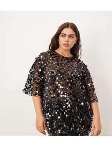 ARRANGE long sleeve square cut top in molten khaki sequin-Green