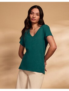 Skechers Women's Diamond Wash Hatha V-Neck Pocket T-Shirt in Aqua, Size XS | Cotton