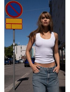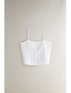 Kaiia exclusive cotton blend sleeveless cropped button through vest top co-ord in cream-White
