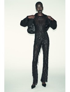 Claudie Pierlot lace-insert ribbed-knit top - Black