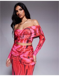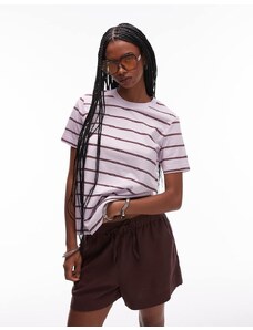 ARRANGE Curve oversized premium heavy weight t-shirt in pink and burgundy stripe-Multi