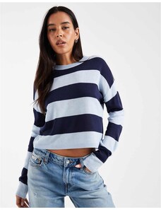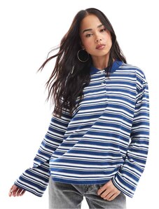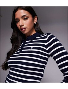 ASOS Weekend Collective Weekend Collective cropped stripe polo top in navy-Multi